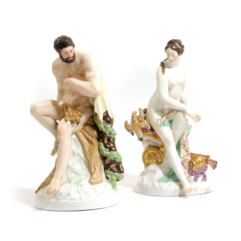 A PAIR OF CONTINENTAL PORCELAIN FIGURES OF HERCULES AND VENUS