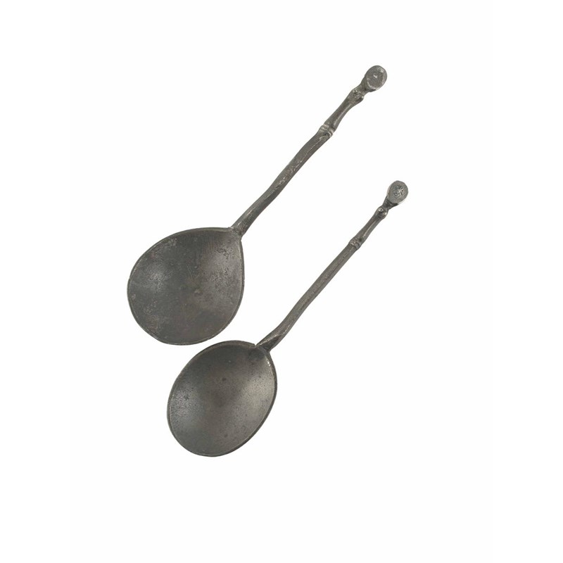 A 17th century Dutch spoon, with a rat-tail fig shape bowl and a 'hoof' terminal, marked a 'crowned rose and an R', 7in (18cm) l., and a similar spoon with an oval bowl, marked a 'crowned rose with a D', 6.75in (17cm) l. (2)