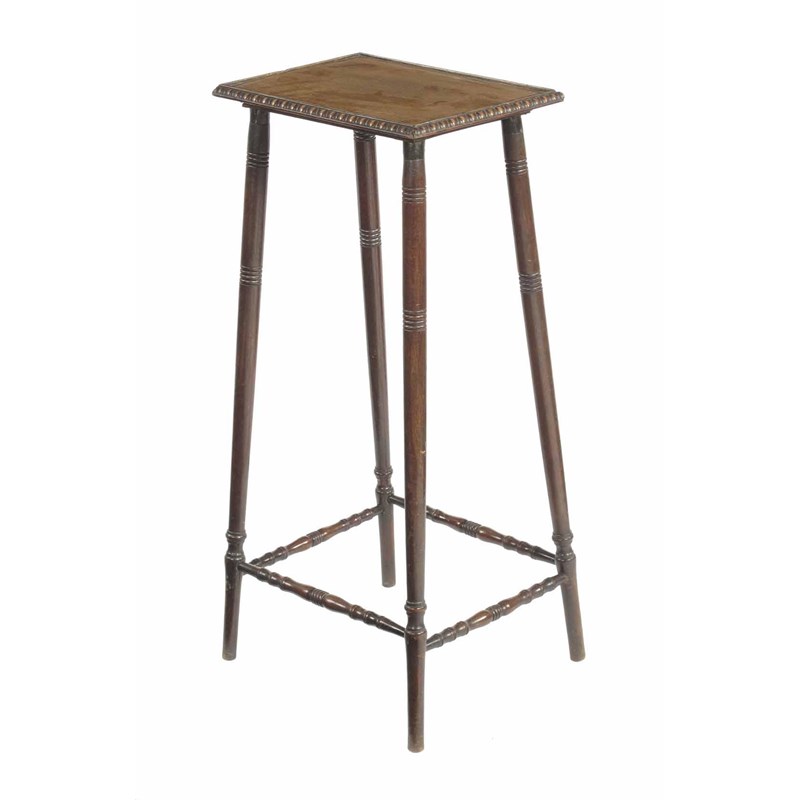 A 19th century mahogany lamp table, the rectangular reeded edge top with a reel moulded border on turned supports, 28.75in (73cm) h, 13.25in (33.5cm) w, 10in (25.5cm) d.
