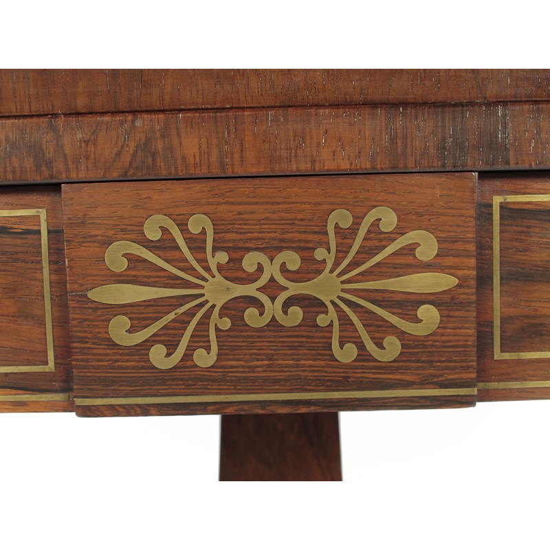 A pair of Regency rosewood and brass marquetry card tables