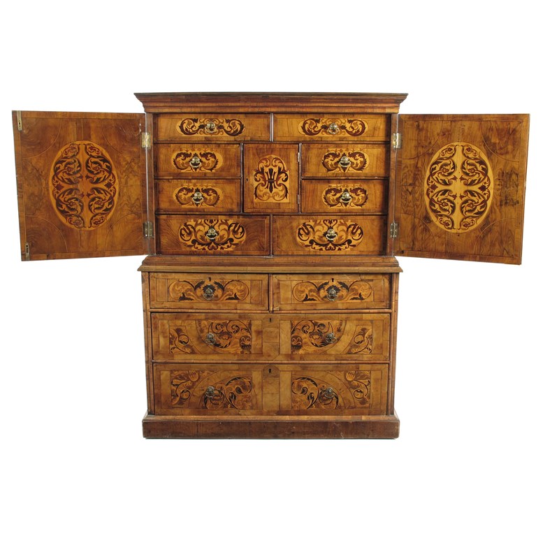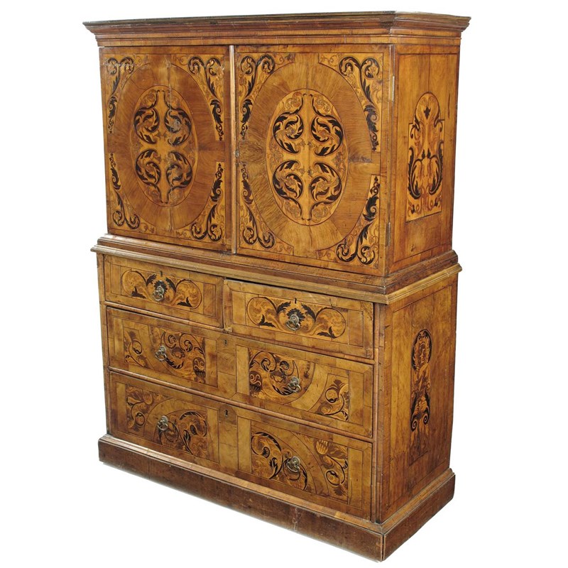 A Dutch walnut and marquetry cabinet on chest