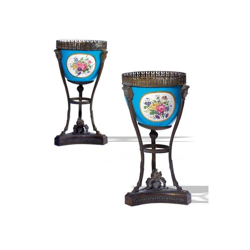 A pair of 19th century French bronze and Sèvres style porcelain jardinières in Louis XVI style