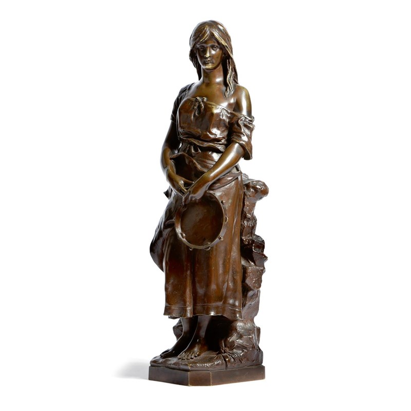 Claudius Marioton (French 1844-1919). A bronze figure of a gypsy girl holding a tambourine