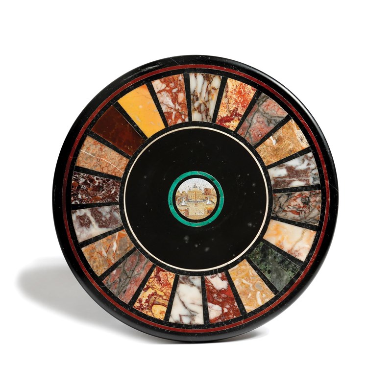 A 19th century Italian Grand tour specimen marble and micromosaic circular plaque