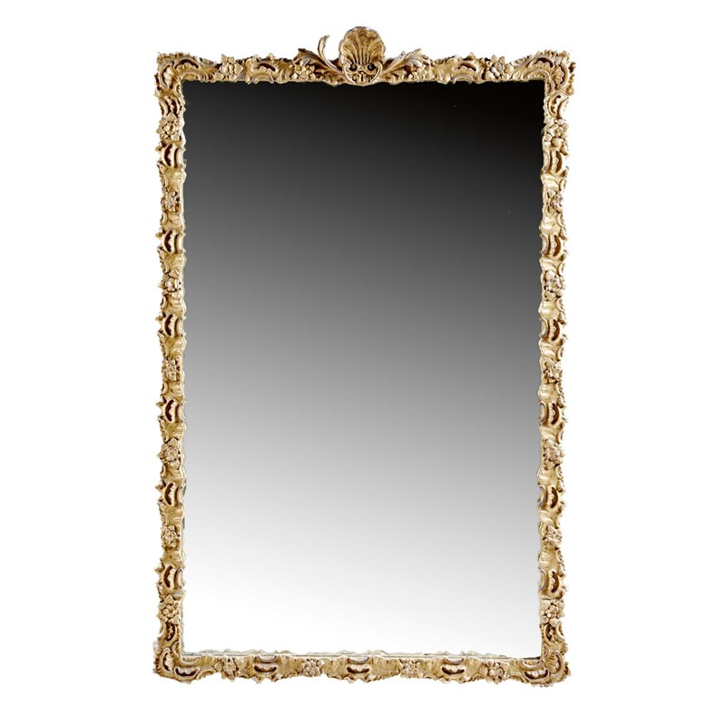 A pair of Victorian gilt composition wall mirrors, each with a rectangular plate, within a Rococo decorated frame and with a shell surmount, 79 x 50.5cm.
