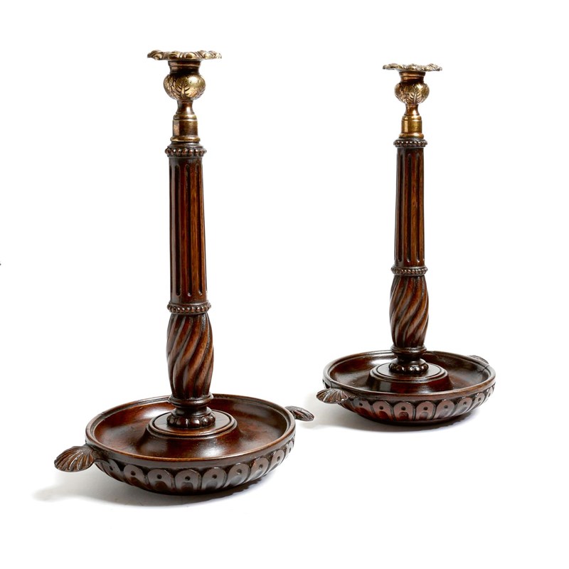 A pair of Victorian mahogany candlesticks