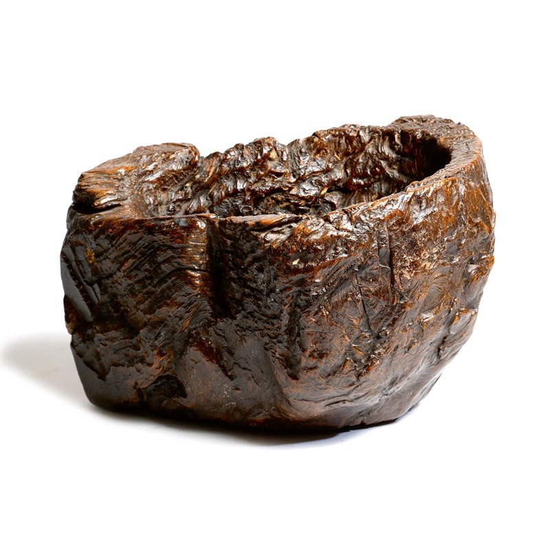 A primitive dug-out rootwood bowl
