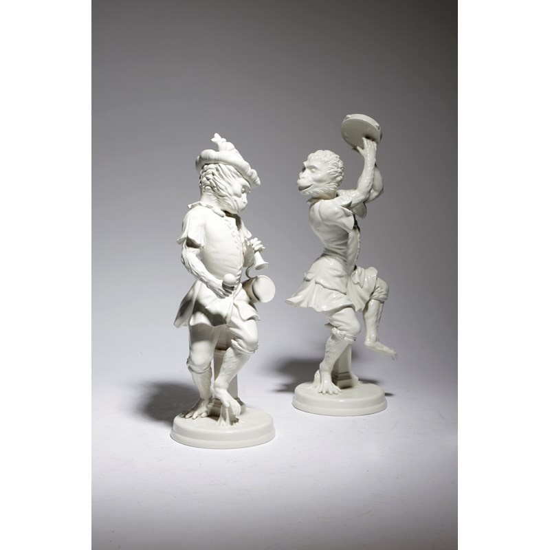 A PAIR OF ITALIAN CERAMIC MONKEY BAND FIGURES