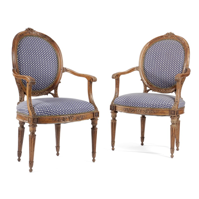 A PAIR OF WALNUT FAUTEUIL