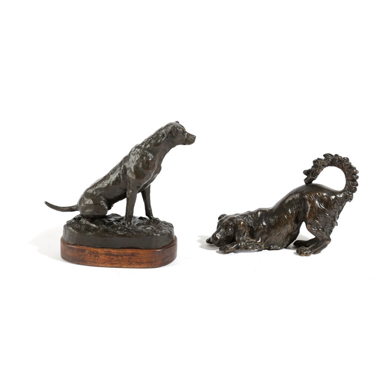 A FRENCH BRONZE ANIMALIER FIGURE OF A SPANIEL