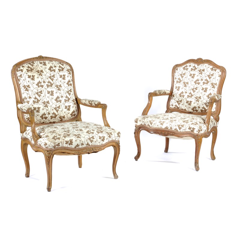 A NEAR PAIR OF FRENCH BEECHWOOD FAUTEUIL