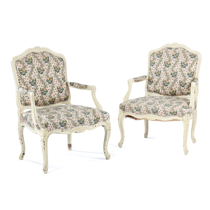 A PAIR OF FRENCH PAINTED FAUTEUIL