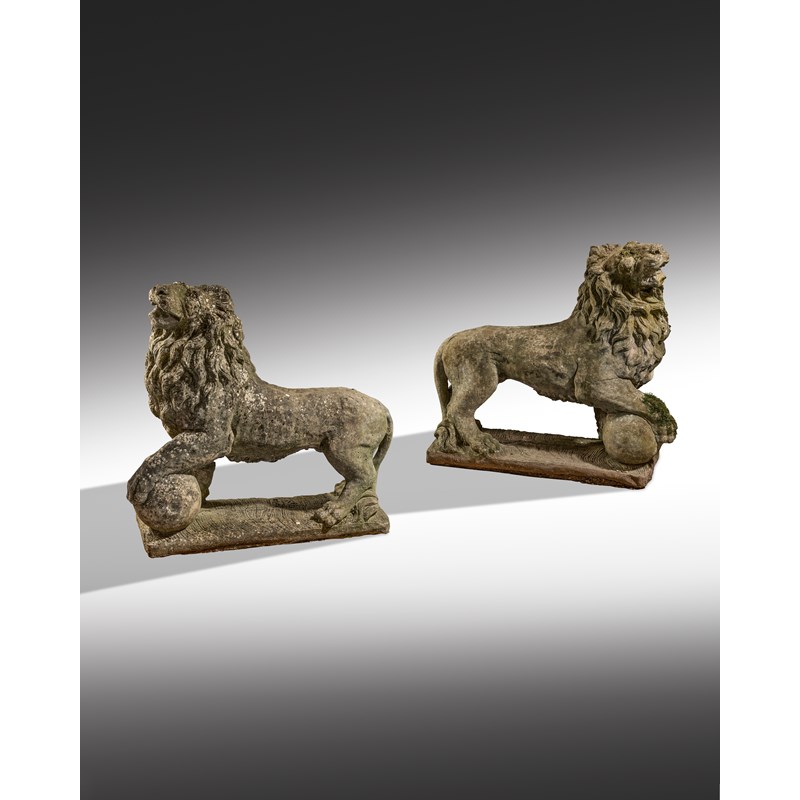 A PAIR OF LARGE COMPOSITION STONE GARDEN MEDICI LIONS
