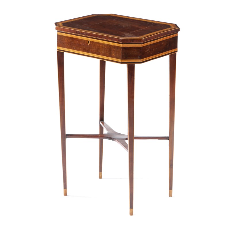 of canted rectangular form with a hinged cover, on tapering square section legs