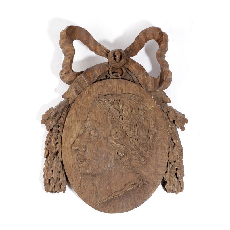 the central medallion with the profile of a Roman emperor, surmounted by ribbon tied oak leaves and acorns