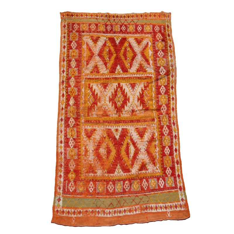 the compartmentalised field of serrated medallions enclosed by madder borders