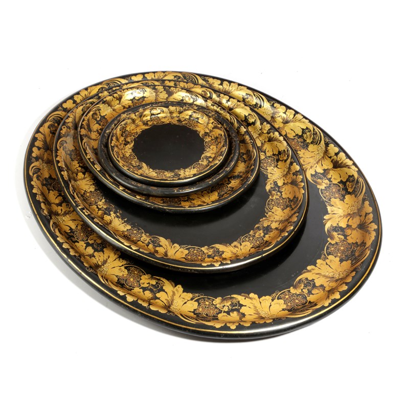 A GRADUATED SET OF FIVE VICTORIAN PAPIER-MÂCHÉ TRAYS
