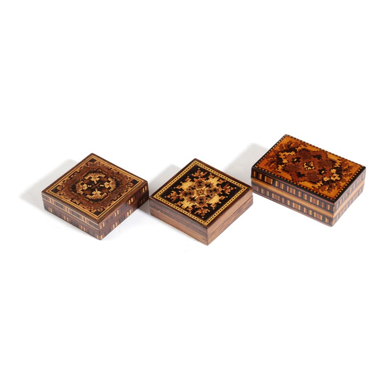 λ TWO TUNBRIDGE WARE TANGRAM PUZZLE BOXES