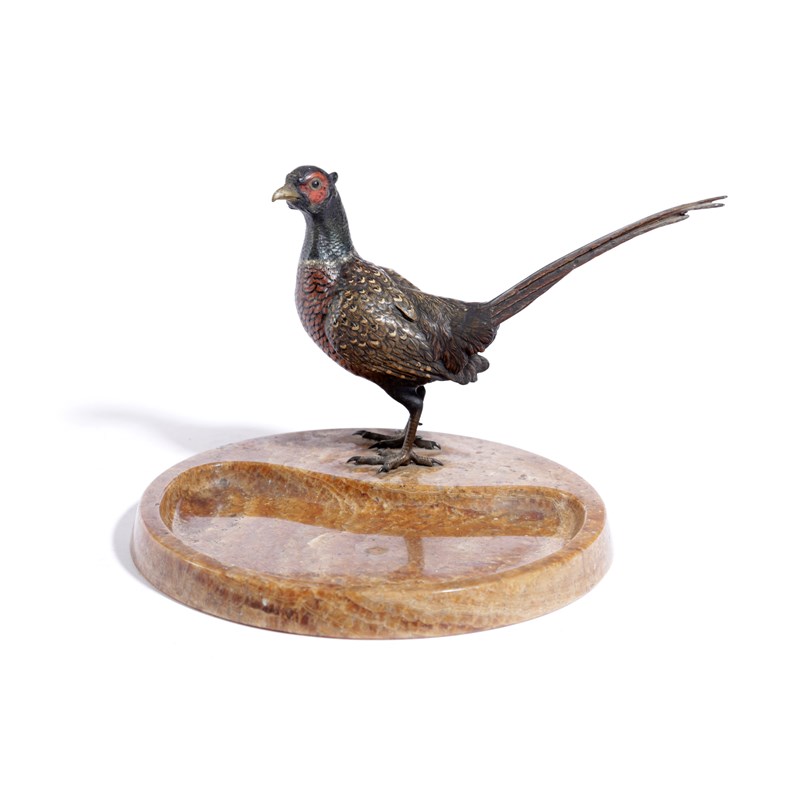 AN AUSTRIAN COLD PAINTED BRONZE PHEASANT DESK STAND