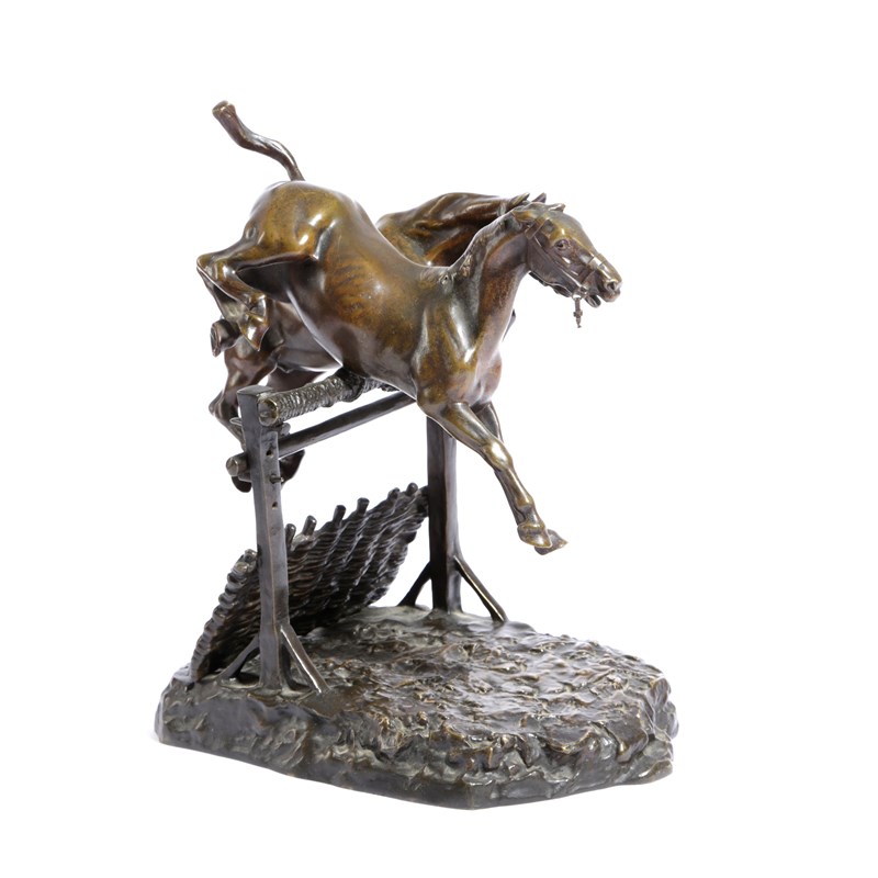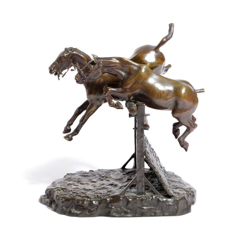 of two horses jumping a hurdle, signed to the base and foundry marks for Susse Freres of Paris