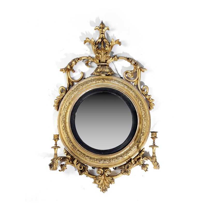 A LATE REGENCY GILTWOOD AND GESSO CONVEX GIRANDOLE MIRROR