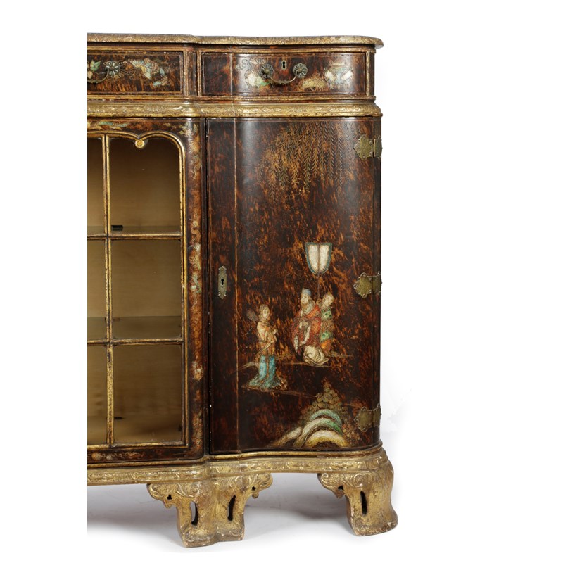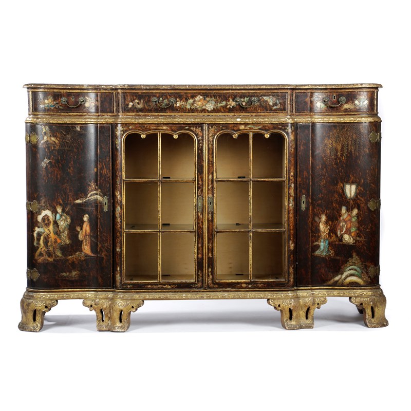 A JAPANNED AND GILTWOOD BREAKFRONT SIDE CABINET