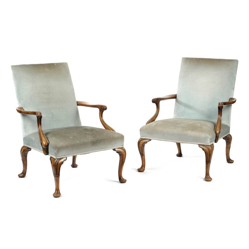 A PAIR OF WALNUT GAINSBOROUGH ARMCHAIRS
