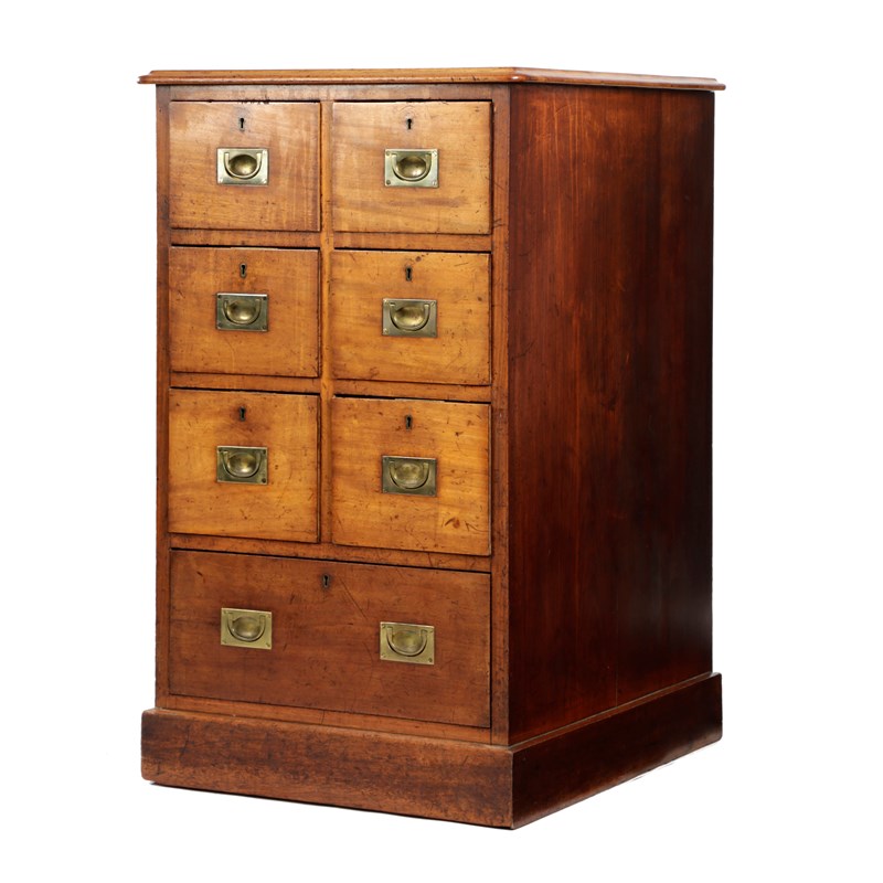 with six short and one long drawer, with sunken brass campaign style handles