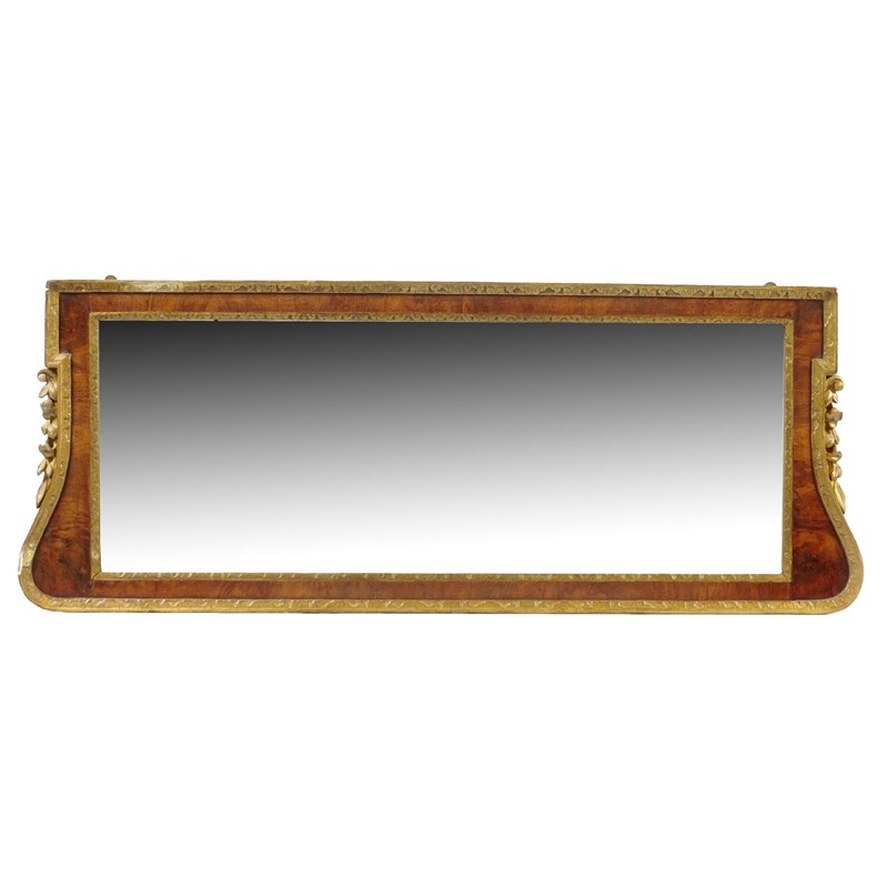 A George II walnut and giltwood overmantel mirror, the later bevelled glass plates within a moulded slip and a conforming outer border with carved flower garlands, 48.5 x 126.1cm.