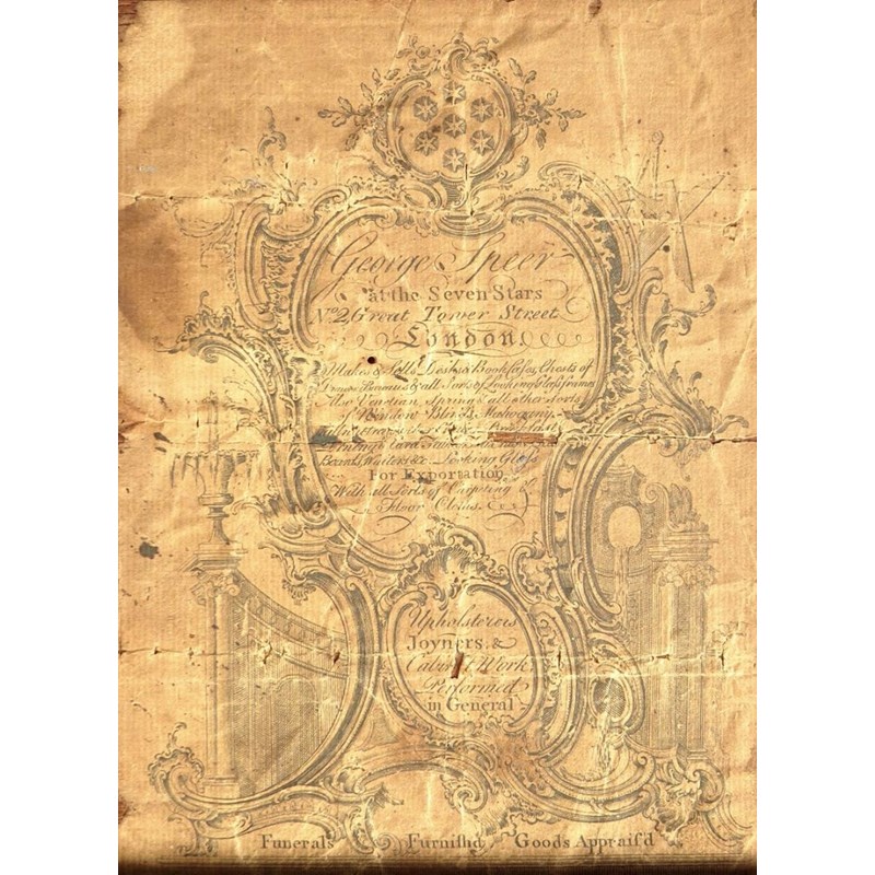 George Speer (1736-1802), was based at 'The Seven Stars' 2 Great Tower Street, London by 1761 and was a cabinet maker and undertaker. His first mention in the London directories isn't until 1777. A small number of items have been recorded with his rococo trade label which he shared with his cousin John. See Anthony Coleridge, Apollo, October 1970, for an article on George Speer featuring a number of drawings. A mahogany bureau cabinet obtained by the V&A Museum in 1980 is believed to have been made by George Speer. See Christopher Gilbert, Pictorial Dictionary of Marked London Furniture, 1700-1840 pp. 435-439.
