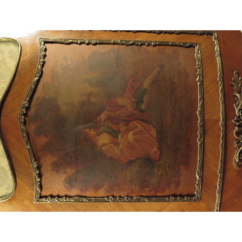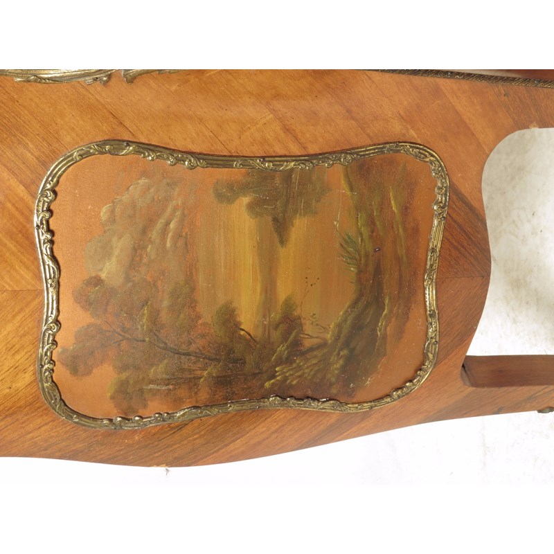 A near pair of French kingwood and Vernis Martin serpentine vitrines in Louis XV style