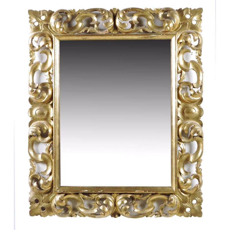 An Italian Florentine carved giltwood wall mirror, the rectangular plate within a scrolling leaf frame, late 19th / early 20th century, 72 x 60.4cm.