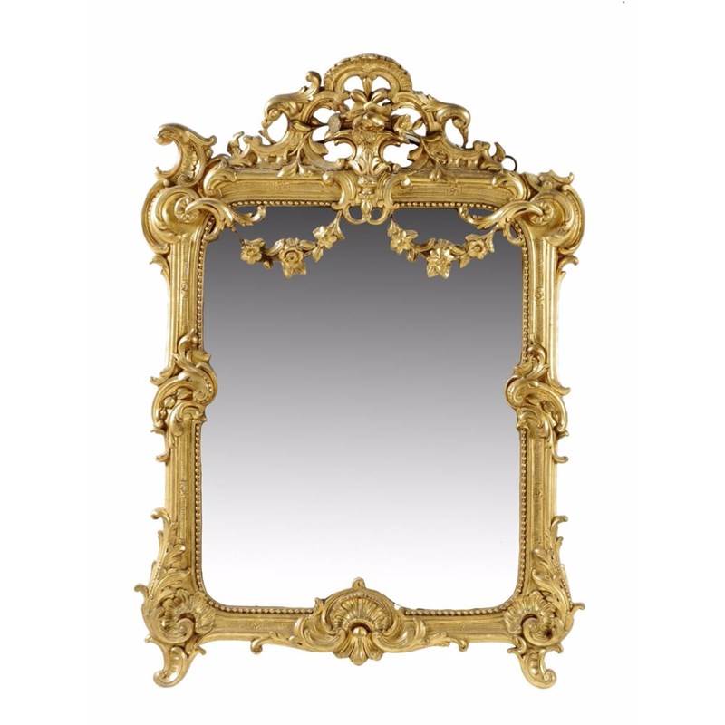 A 19th century French giltwood and gesso wall mirror, with scroll and floral decoration, 78.6 x 59.6cm.