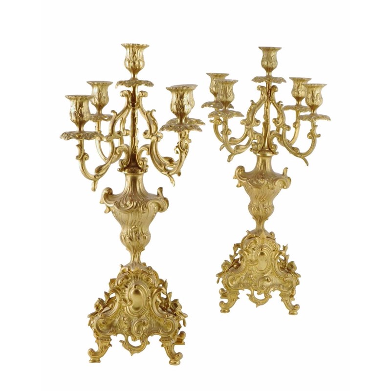 A pair of late 19th century five light candelabra in Louis XV style
