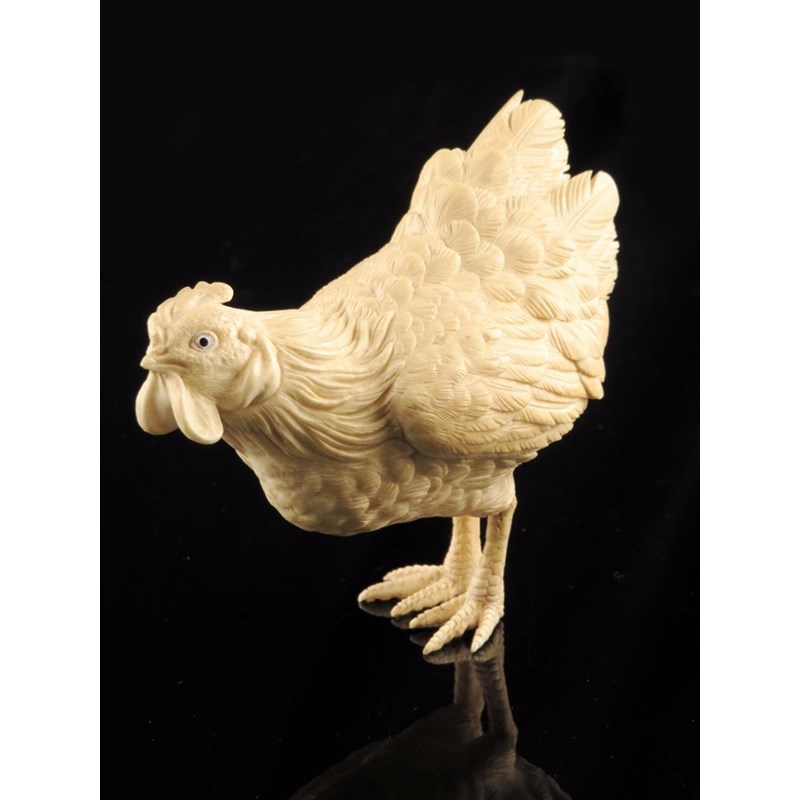 λ A Japanese carved ivory model of a chicken