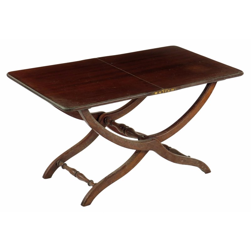 A low Victorian mahogany coaching table, with turned stretchers, 47cm high, 91.2cm wide, 49.3cm deep.