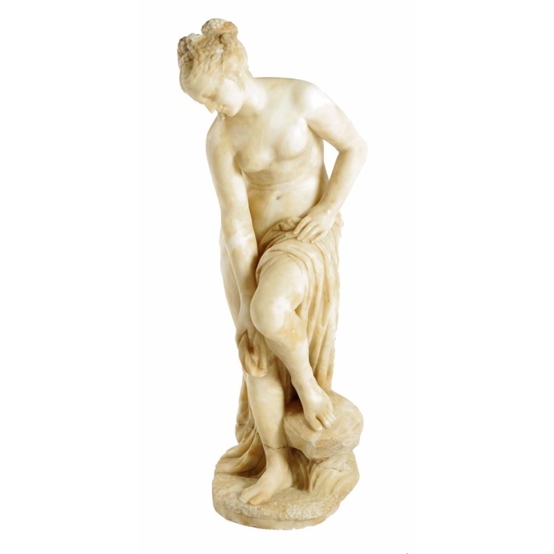 After Christophe Gabriel Allegrain (French 1710-1795). A late 19th century carved alabaster figure of the bathing Venus, 88cm high.