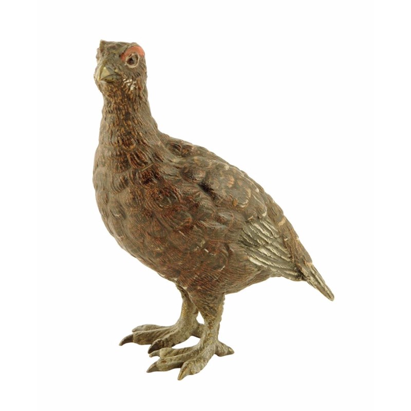 An Austrian cold painted bronze model of a grouse in the manner of Bergman
