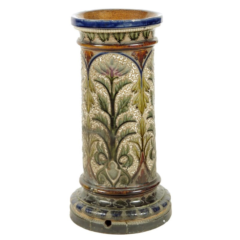 A late Victorian Fulham pottery stoneware stickstand, with moulded mark to base, 68cm high, 34.7cm diameter.
