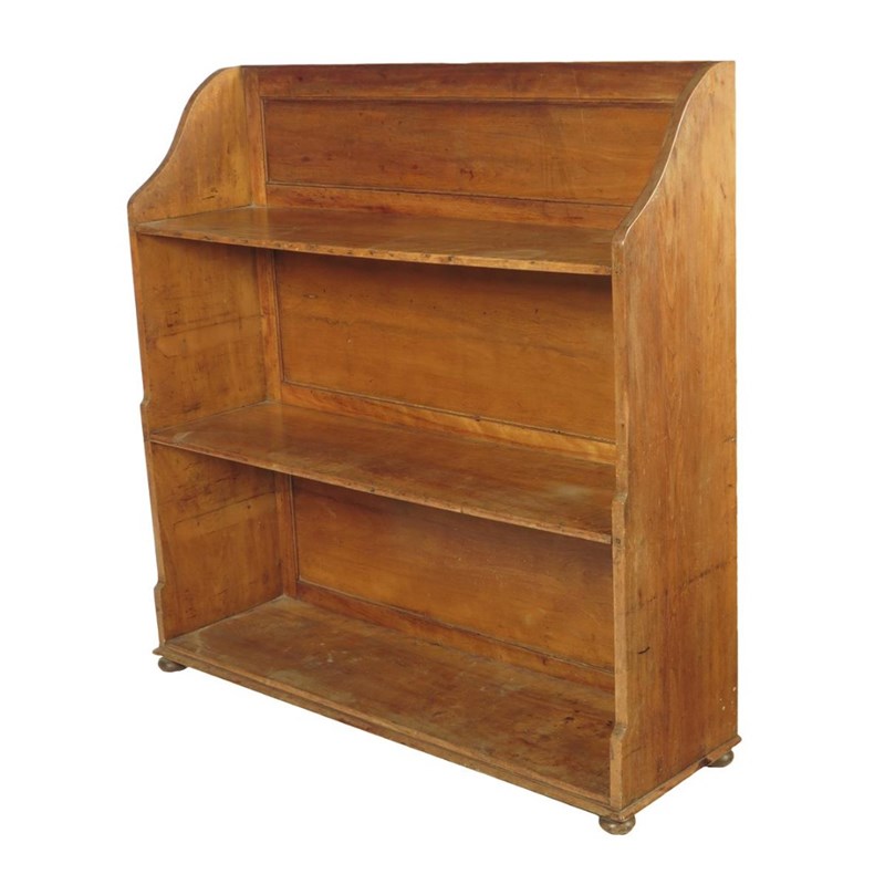 A 19th century satin birch open waterfall bookcase, with two shelves on disc feet, 107.8cm high, 106cm wide, 32.8cm deep.
