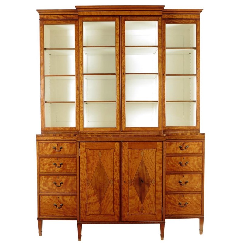 λ An Edwardian satinwood breakfront bookcase in Sheraton style