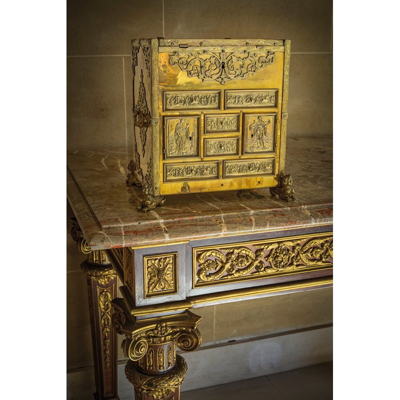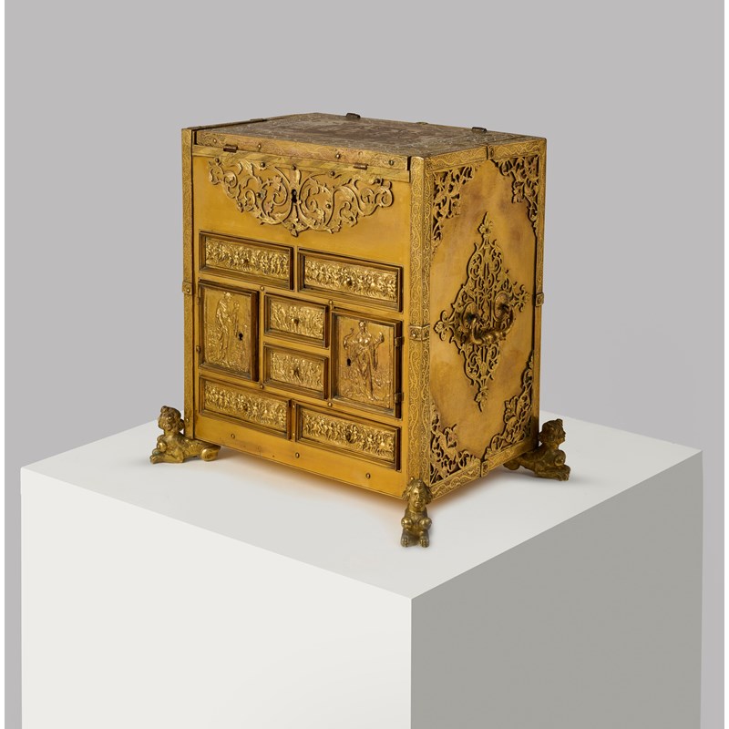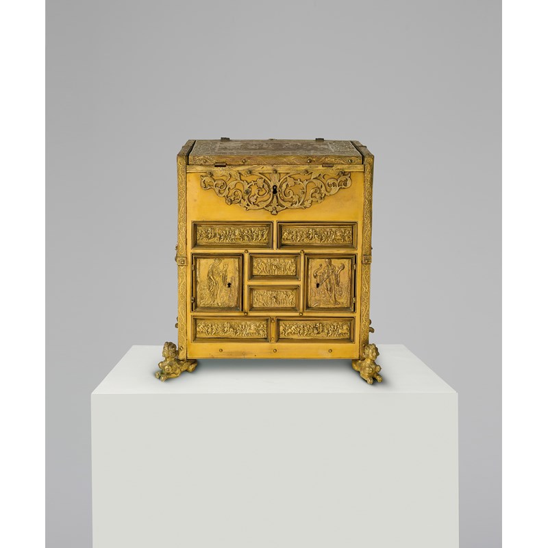 Nuremburg and Augsburg were renowned for making small scale and highly decorative objects in a variety of metals and it is highly likely that the example offered here was made in a workshop in one of these two cities. Their history and production is discussed at length in G. Summlung, Kostbar und geheimnisvoll - Miniaturmöbel und Schatzkästchen..