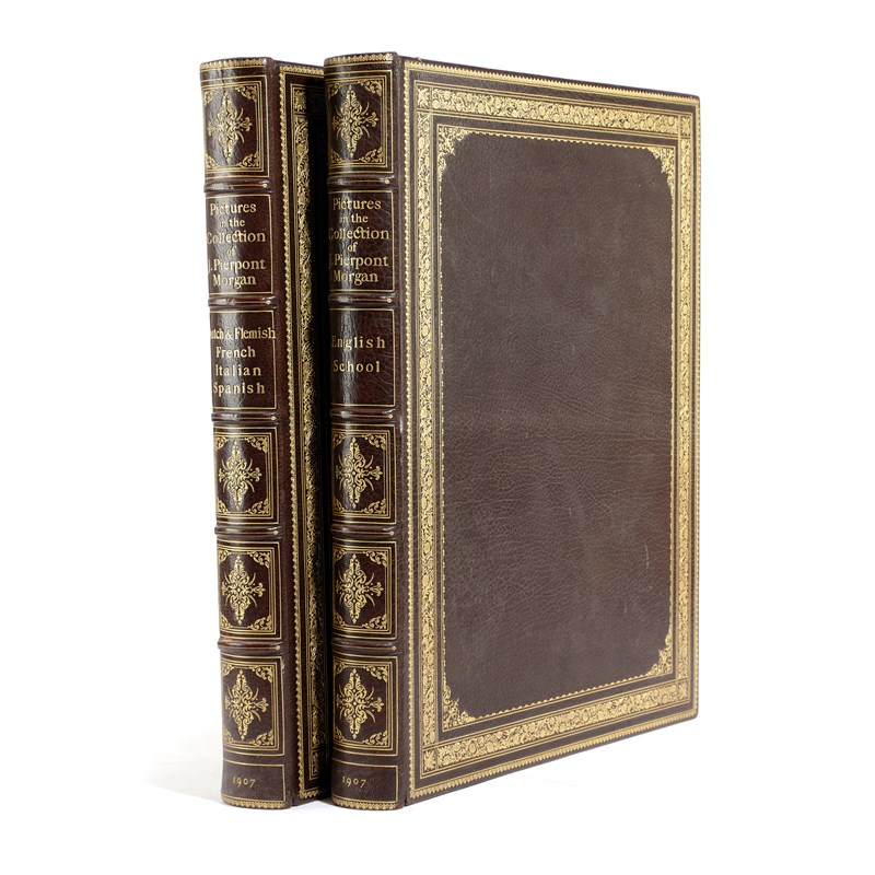 at Princes Gate & Dover House, London, two volumes, English School and Dutch & Flemish, French, Italian and Spanish, with an introduction by T. Humphrey Ward and Biographical and Descriptive Notes by W. Roberts, Privately Printed, London, 1907, full brown Morocco with gilt tooled decoration to the covers, green watered silk to inside covers and end pages, gilt top edges (2)
