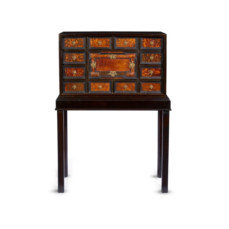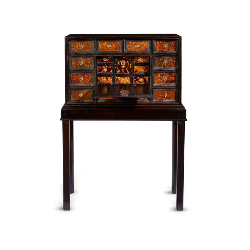 λ AN ITALIAN BAROQUE EBONY AND TORTOISESHELL CABINET ON LATER STAND