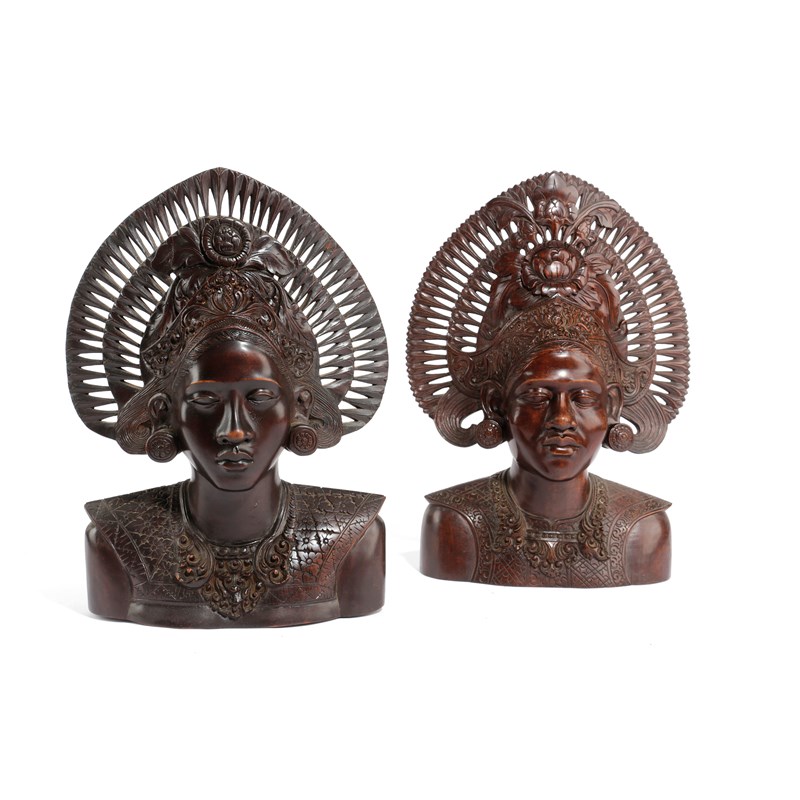 TWO INDONESIAN HARDWOOD BUSTS