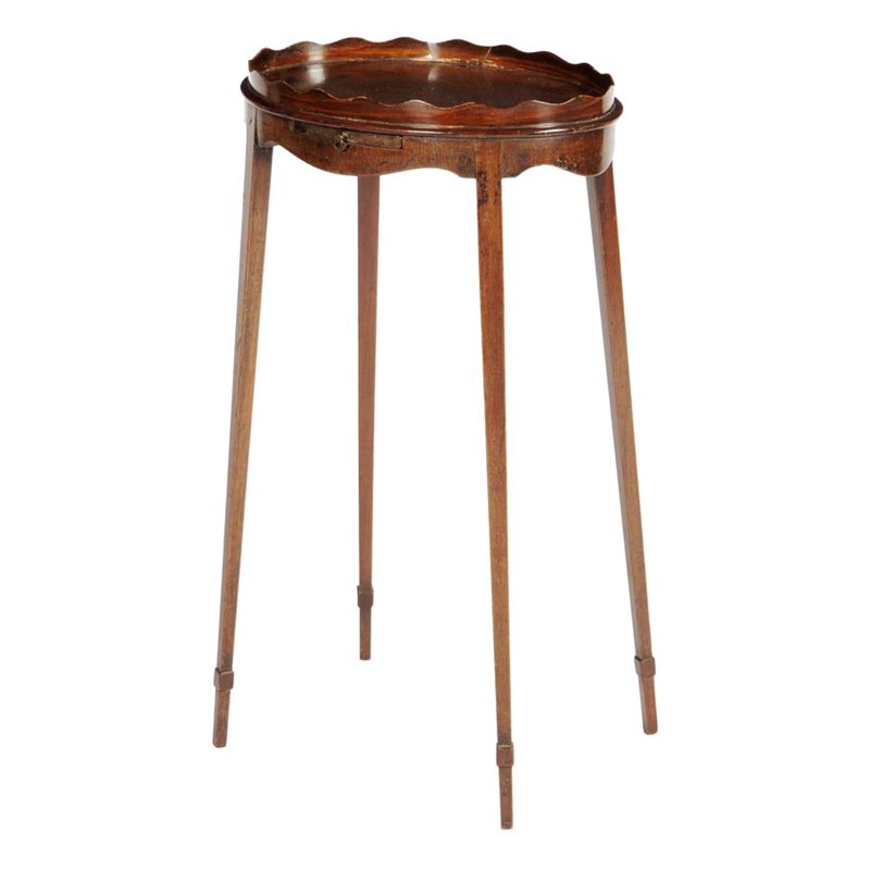 A George III mahogany urn stand, the oval top with a way edge gallery above a pull-out slide, on square tapering legs with applied ankles, 65.3cm high, 37cm wide, 26.2cm deep.