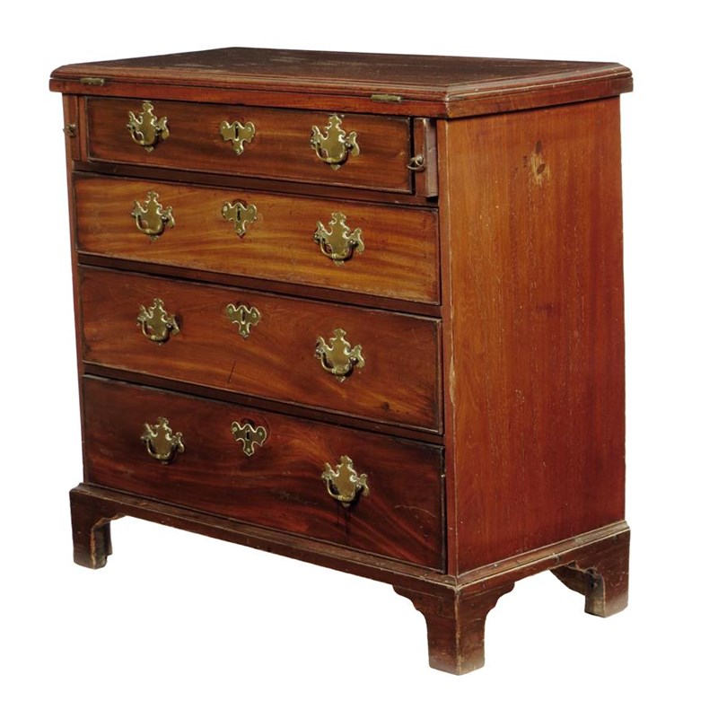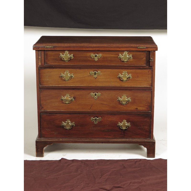 A George II mahogany bachelor's chest, the hinged fold-over top with a moulded edge, above four long graduated drawers, 73.8cm high, 75.8cm wide, 36cm deep.
