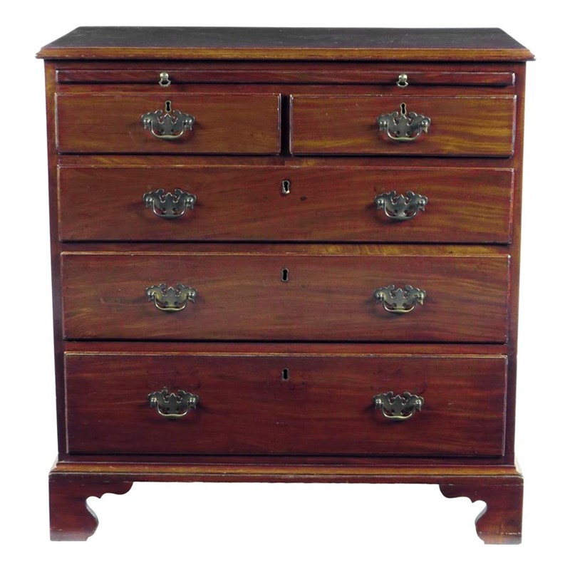 An early George III mahogany chest, fitted with a baize lined brushing slide, above two short and three long graduated drawers, 85.8cm high, 82.2cm wide, 46.8cm deep,