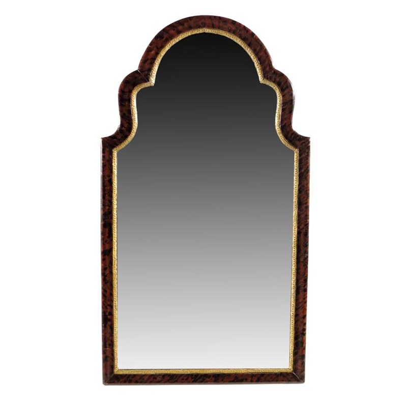 A simulated tortoiseshell wall mirror, with two arched plates within a gilt moulded slip and a painted frame, 91.5 x 51cm.