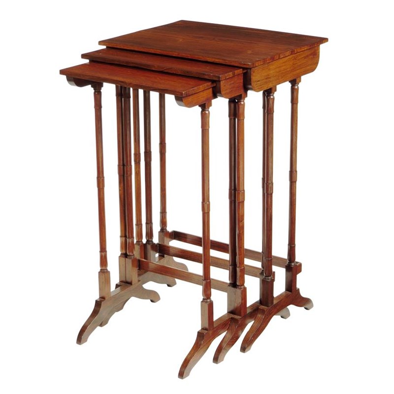 λ A nest of three George IV rosewood occasional tables, each with turned supports, 71.3cm high, 44cm wide, 33cm deep. (3)